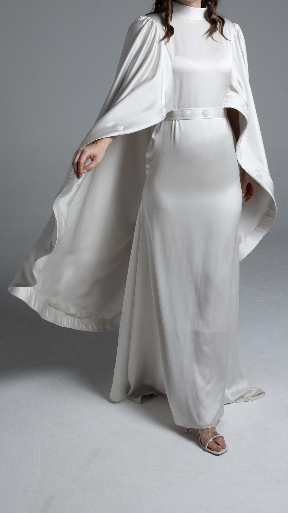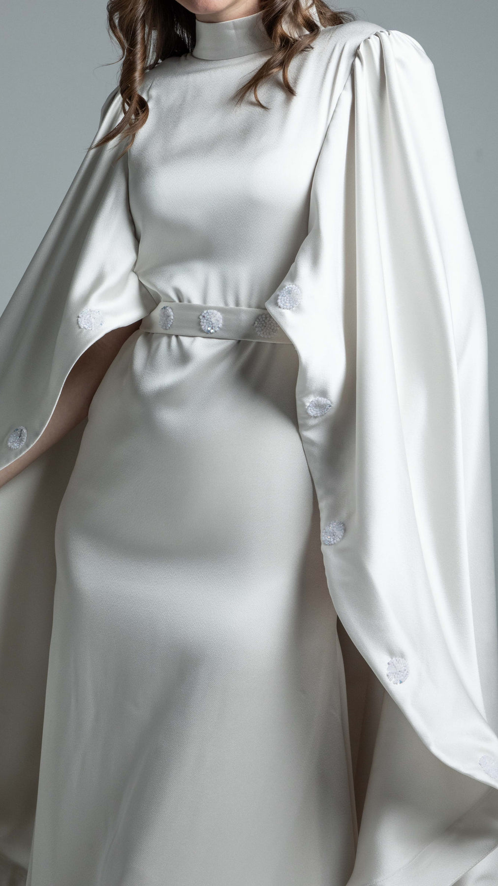 Butterfly-Inspired Body Fit Dress makes a bold statement with the GDOR 856, a body-fit long dress designed to accentuate your silhouette with refined elegance and artistic flair. Sophisticated high neck that adds a graceful, modern edge. Sleek sleeveless design for a streamlined, confident look. Inspired by the beauty of a butterfly, featuring soft gathering on the shoulders creates a flowing, sculpted form. Hand-applied sequins arranged in delicate circular patterns for a subtle shimmer that catches the light beautifully. Come with a separate matching belt to define the waist and enhance the dress’s shape. Crafted from luxurious Sunshine fabric, offering a radiant sheen and comfortable fit perfect for special occasions or evening events.