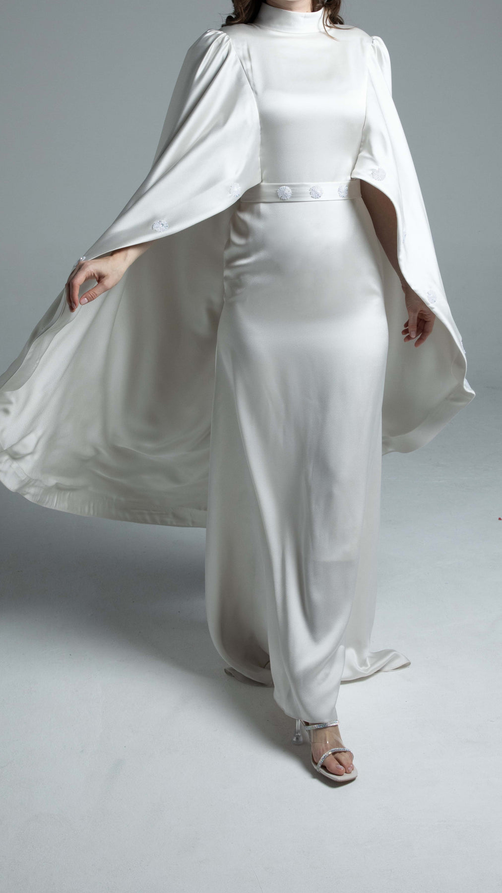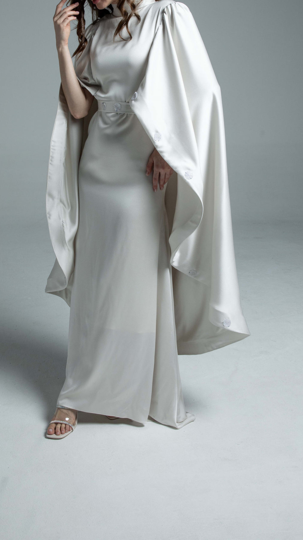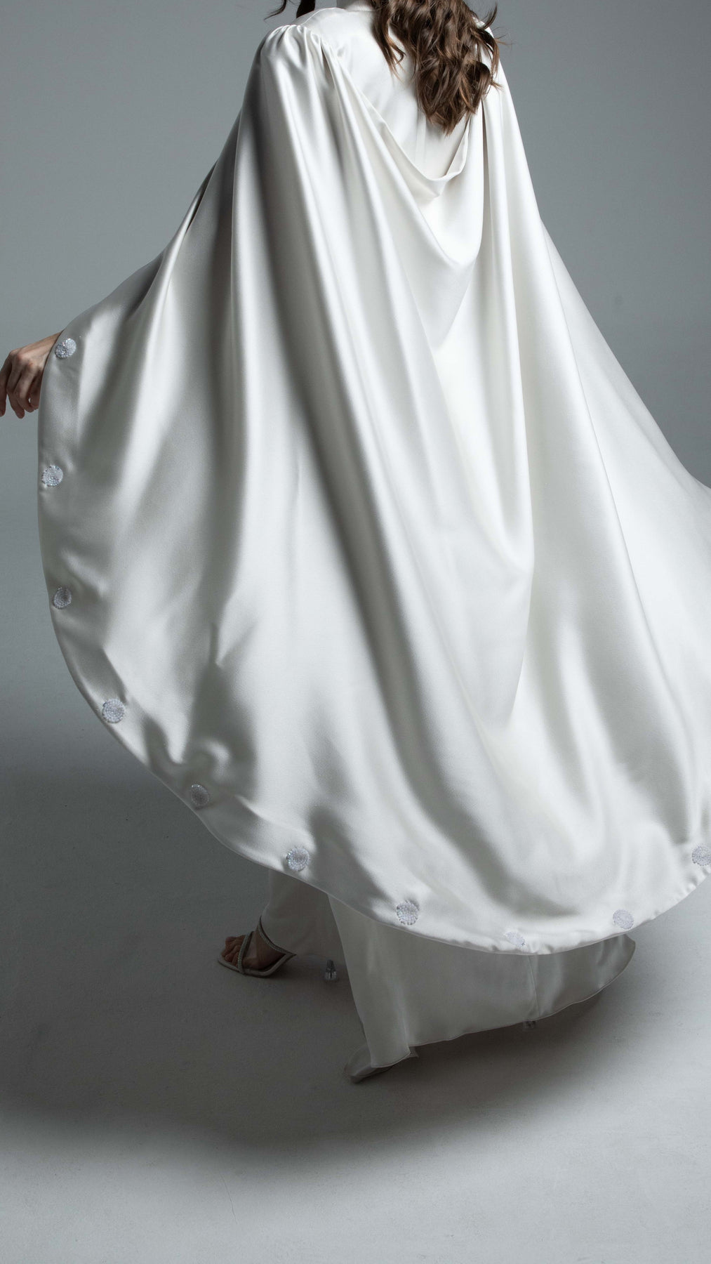 •    Detail: Dress design like a butterfly shape with gathering on the shoulder, hooded and embellished with sequins in circle shape.