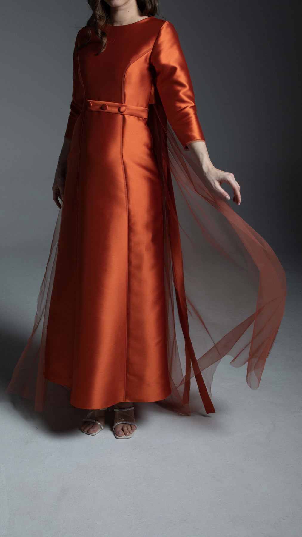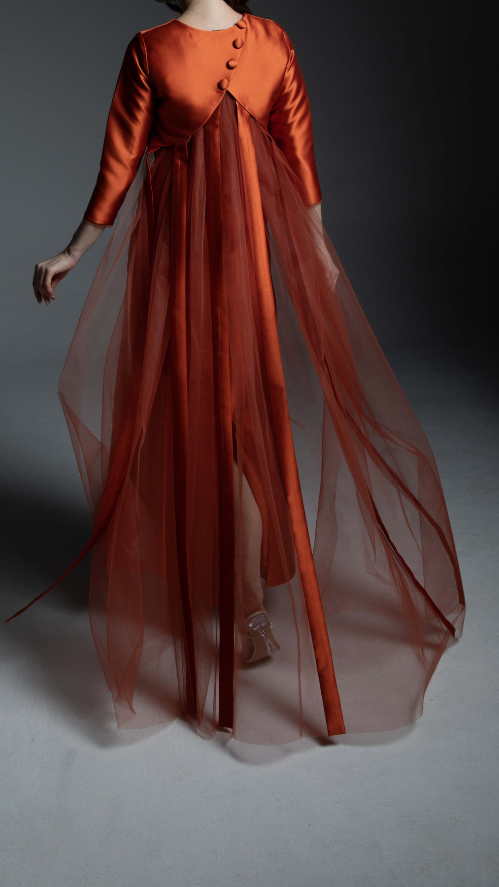 •    Fabric: Mikado Satin and Tulle